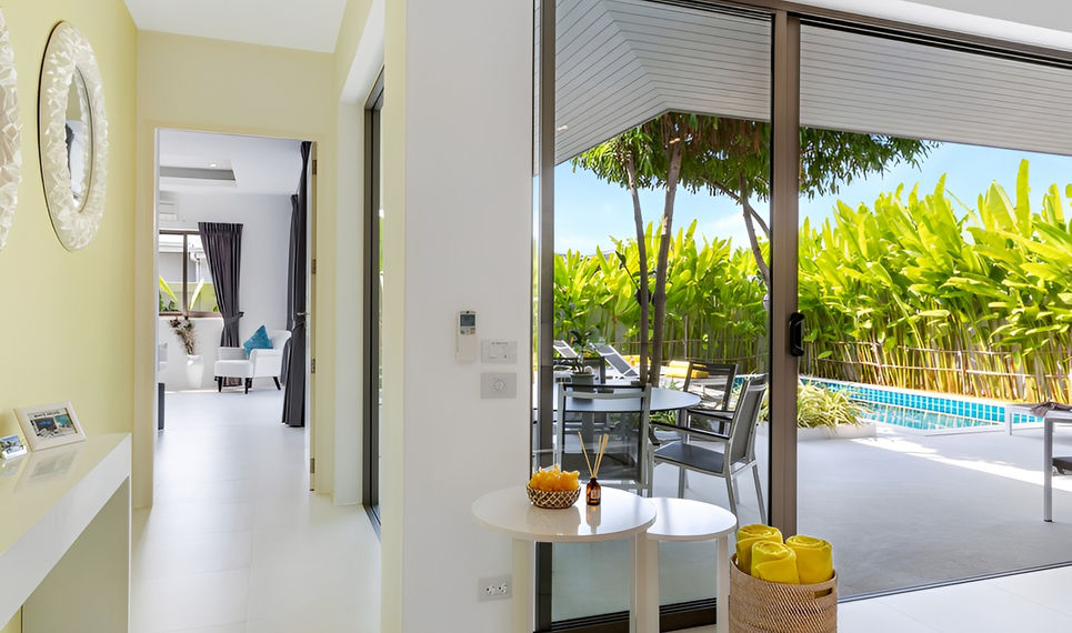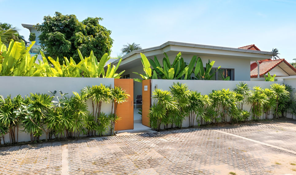 Enjoy a perfect and relaxing stay at a very new, modern and fully private villa. This cozy three bedrooms and one story villa is fully equipped for all desires. Park your car or scooter in front of the house and enter your very private oasis with a nice pool area surrounded with green plants.